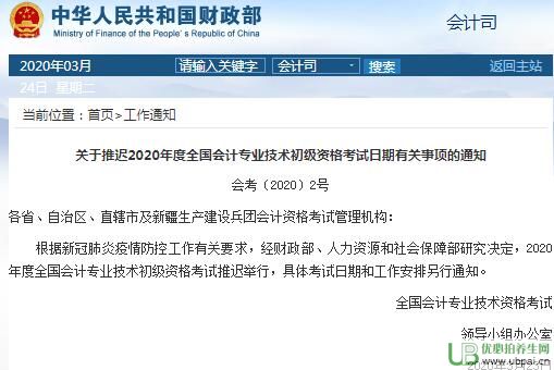 財(cái)政部、人力資源和社會(huì)保障部最新消息!2020年度全國會(huì)計(jì)專業(yè)技術(shù)初級(jí)資格考試推遲舉行!具體考試日期和工作安排另行通知!