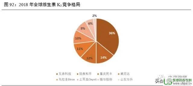 據公開資料顯示,全球共 6家維生素 B5生產商,總產能約為2.8萬噸,6 家供應商中 4 家為中國企業,國內產能占全球近 80%的份額。億帆醫藥為維生素 B5最大供應商,采用酶生物拆分法進行生產,據公司 2018年年報稱,公司原料藥維生素 B5 及原 B5 產品 70%以上銷往歐美等多個國家和地區,全球市場占有率40%-45%,穩居龍頭地位。兄弟科技屬維生素 B5市場新進入者,產線暫未達到滿產狀態。