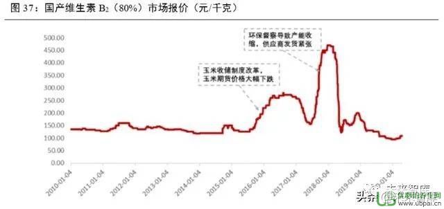 隨著中小產能退出市場,市場供需格局改善,玉米收儲制度改革加之環保限產導致產能收縮、供應商發貨緊張,維生素B2在 2016 年-2017 年出現了比較大幅的價格波動。目前,維生素 B2的價格約 100 元/kg,處于歷史低位,由于行業內“睡眠產能”較多,供需格局變動空間較大,價格向上動力不足,但仍需關注本輪新冠肺炎疫情對開工的影響,若疫情持續時間長,全球生產受阻周期長,仍將促使生產商提價。