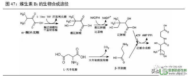 泛酸生物合成途徑包括四種酶,分別是酮泛解酸羥甲基轉移酶(PanB)、酮泛解酸還原酶(PanE)、L-天冬氨酸-α-脫羧酶(PanD)和泛酸合成酶(PanC)。微生物酶法拆分DL-泛解酸內酯具有成本低、環境友好等特點。