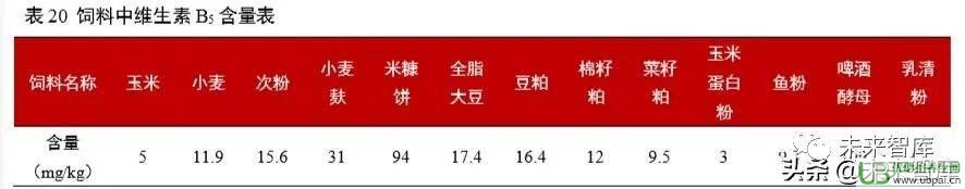 雖然飼料為維生素行業最重要的下游需求,但是維生素在動物配方飼料中的添加量卻非常少。下表為荷蘭帝斯曼對家禽飼料的維生素配方,可見每千克飼料中的單種類維生素添加量通常僅為毫克級別。