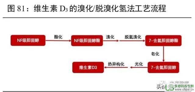 目前維生素 D3 的工業生產采用的生產工藝主要有兩種:溴化/脫溴化氫法和氧化還原法。溴化/脫溴化氫法發明于 1942 年,早期被國外幾家大企業技術壟斷。1999年后中國企業花園生物聯合中科院理化所研發