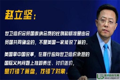 趙立堅還補充了一個事實:“世衛組織會員國繳納會費的比例和標準是由會員國共同確定的,不是美國一家能說了算的。及時、足額繳納會費是美國作為世衛組織成員國應盡的義務,而不是可以討價還價的。美國任意對國際組織斷供、減資的行為是單邊主義行徑,違反自身國際義務。”趙立堅說,美國拿中國說事,在履行應向世衛組織承擔的國際義務問題上推卸責任、討價還價,是打錯了算盤,找錯了對象。
